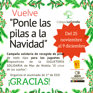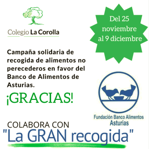 Organiza durante todo el mes de diciembre, una recogida de alimentos, juguetes, ropa… a favor de una entidad social, implicando a profesorado, alumnos y familias.